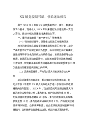 XX镇党委书记20XX年度履行推进法治建设第一责任人职责述职报告县委全面依法治县委员会:20XX年我镇在县委县政府的正确领导下,以习近平新时代中国特色社会主义思想为指引,深入贯彻全面依法治县的要求,认真落实法治建设各项工作部署。本人切实履行推进法治建设第一责任人职责,积极探寻依法治镇、社会稳定和经济发展并行的XX之路。现将本人20XX年度履行推进法治建设第一责任人职责述职如下:一、加强领导,压实法治建设责任围绕法治政府建设责任制落实,主动部署重要工作、过问重大问题、协调重点环节、督办重要任务,把各项工作纳入法治化轨道,成为法治建设中的组织者、推动者和实践者。同时要求各级各部门提高站位、主动认领...