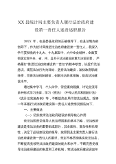 XX县统计局主要负责人履行法治政府建设第一责任人述责述职报告20XX年,在县委县政府的正确领导下,在县法制办的指导下,作为统计局推进法治政府建设第一责任人,我深入学习贯彻党的十九大、十九届五中、六中全会精神,全面贯彻落实党中央、省、州、县关于法治建设的重大决策部署,严格履行“推进法治政府建设第一责任”的根本职责,以提升法治意识、规范法治行为为目标,坚持法治建设,加快政府职能转变,完善法治机制建设,创新法治具体措施,提高法治建设水平。通过集中学习、个人自学、管控案例视频、讨论交流等多种形式学习法律,学习《宪法》《中华人民共和国统计法》《统计法实施条例》等,不断提高全局干部法治观念。现将一年来履行...