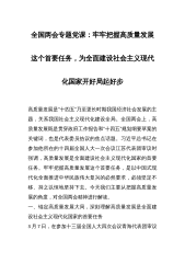 全国两会专题党课:牢牢把握高质量发展这个首要任务,为全面建设社会主义现代化国家开好局起好步高质量发展是“十四五”乃至更长时期我国经济社会发展的主题,关系我国社会主义现代化建设全局。全国两会上,高质量发展既是贯穿政府工作报告和“十四五”规划纲要草案的关键词,也是代表委员热议的焦点话题。习近平总书记在参加他所在的十四届全国人大一次会议江苏代表团审议时强调,高质量发展是全面建设社会主义现代化国家的首要任务。牢牢把握高质量发展这个首要任务,是以中国式现代化全面推进中华民族伟大复兴的必然要求,必须坚定不移、持之以恒地坚持下去。今天我们主要从把握高质量发展的角度,对全国两会精神进行解读。一、锚定高质量发展...