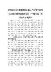 副市长2025年度落实全面从严治党主体责任和党风廉政建设责任制“一岗双责”情况述责述廉报告2025年,在市委、市政府的坚强领导下,我始终坚持以习近平新时代中国特色社会主义思想为指导,深入学习贯彻党的二十大和二十届三中、四中全会精神,坚决落实中央关于全面从严治党的战略部署,严格履行政府系统分管领域全面从严治党主体责任和党风廉政建设责任制“一岗双责”,坚持把纪律挺在前面、把责任扛在肩上、把工作抓在实处,切实做到业务工作与廉政建设同部署、同推进、同考核,努力营造风清气正的政治生态和干事创业的良好环境。现将本人一年来履责情况报告如下:一、提高政治站位,坚定不移把全面从严治党要求贯穿履职全过程全面从严治...