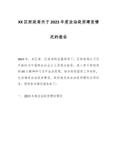 XX区财政局关于2023年度法治政府建设情况的报告2023年,在区委、区政府的坚强领导下,区财政局以习近平新时代中国特色社会主义思想为指导,深入学习贯彻党的XX大精神和习近平法治思想,结合财政国资工作实际,扎实推进法治政府建设,较好地完成法治政府建设各项任务。现将有关情况报告如下:一、2023年度法治政府建设情况(一)深入学习宣传习近平法治思想,努力夯实法治政府建设思想基础。一是深化学习教育,提升法治素养。领导班子带头学习《习近平法治思想学习纲要》《习近平新时代中国特色社会主义思想专题摘编》等辅导资料,通过召开党组会、党组理论学习中心组学习、读书班、“三会一课”等,多形式、各层级、全覆盖学习宣...