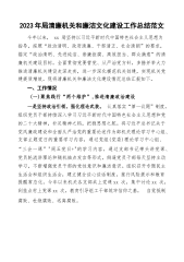 2023年局清廉机关和廉洁文化建设工作总结范文今年以来,xx局坚持以习近平新时代中国特色社会主义思想为指导,按照“政治清明、政府清廉、干部清正、社会清朗”的要求,锚定“政治清明、先进纯洁、崇廉拒腐、高效担当、群众满意”的清廉机关建设目标,全面贯彻党要管党、从严治党方针,多措并举大力推进清廉机关建设走深走实,进一步深化模范机关创建,实现机关党建提质增效。现将清廉机关和廉洁文化建设情况总结汇报如下。一、工作情况(一)聚焦践行“两个维护”,推进清廉政治建设一是坚持政治引领,强化理论武装。认真落实“第一议题”制度,组织党员干部持续深入学习习近平新时代中国特色社会主义思想和党的二十大精神,补足精神之钙,...