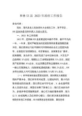 XX镇2023年政府工作报告各位代表:现在,我代表镇人民政府向大会作工作报告,请予以审议,并请各位代表和其他列席会议的同志提出意见。2022年工作回顾2022年,是新一届政府开局之年,也是金山发展史上极不平凡的一年。一年来,面对各类风险挑战明显上升的复杂局面和新冠肺炎疫情冲击,镇人民政府在中共XX镇党委的坚强领导下,在镇人大及各位代表的监督支持下,坚持以习近平新时代中国特色社会主义思想为指导,坚决贯彻党中央“疫情要防住、经济要稳住、发展要安全”重要指示要求,深入学习宣传落实党的二十大精神,团结带领全镇广大干部群众,真抓实干、砥砺前行,较好完成了镇第三届人大一次会议确定的目标任务,经济社会高质量...