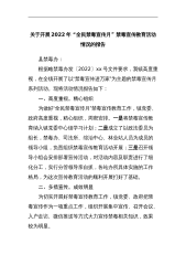 关于开展2022年“全民禁毒宣传月”禁毒宣传教育活动情况的报告