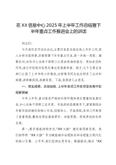 在XX信息中心2025年上半年工作总结暨下半年重点工作推进会上的讲话