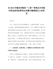 在2025年镇农村集体“三资”管理及乡村振兴资金使用监管突出问题专题调度会上的讲话