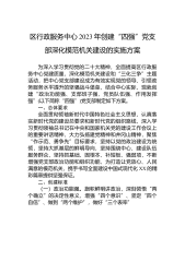 区行政服务中心2023年创建“四强”党支部深化模范机关建设的实施方案为深入学习贯彻党的二十大精神,全面提高区行政服务中心党建质量,深化模范机关建设和“三化三争”主题活动,把中心党支部建设成为有效实现党的领导、引领政务服务水平提升的坚强战斗堡垒,结合中心实际,现就创建“政治功能强、支部班子强、党员队伍强、作用发挥强”(以下简称“四强”)党支部制定如下方案。一、总体要求全面贯彻领袖新时代中国特色社会主义思想,认真落实新时代党的建设总要求和新时代党的组织路线,深入学习贯彻领袖总书记在中央和国家机关党的建设工作会议上的重要讲话精神,大力弘扬建党精神和井冈山精神,聚焦“作示范、勇争先”目标要求,坚持以党...