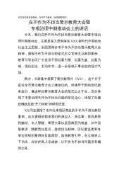 本文系作者原创投稿,仅供学习参考,请勿照搬照抄!在不作为不担当警示教育大会暨专项治理中期推动会上的讲话今天,我们召开不作为不担当警示教育大会暨专项治理中期推动会,主要是深入贯彻落实XXX新时代中国特色社会主义思想,全面贯彻全市不作为不担当警示教育大会精神,通报不作为不担当和形式主义官僚主义典型案例,教育引导全区广大党员干部以案为警、以案为鉴、以案为戒,强化担当、主动作为,进一步形成干事创业的强大气场。刚才,大家集中观看了警示教育片《XX》。这个片子是在全市警示教育大会上播放过的。对领导干部的党纪政务处分,像这样以警示教育大会的形式公之于众,充分体现了市委治理不作为不担当问题的坚定决心,体现了向...