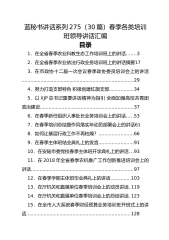 公文堂汇编系列44(27篇)“笔杆子”领导谈“加强组织领导”讲话片段资料汇编目录1.现任中央政治局委员、中央书记处书记,中央办公厅主任兼国家主席办公室主任,中央和国家机关工委书记丁薛祥......................12.现任中央政治局委员,上海市委书记李强............................23.现任中央政治局委员,天津市委书记李鸿忠..........................34.现任中央政治局委员,重庆市委书记陈敏尔..........................95.现任十三届全国政协副主席兼秘书长夏宝龙......................