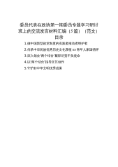 委员代表在政协第一期委员专题学习研讨班上的交流发言材料汇编(5篇)(范文)