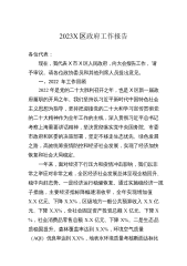 2023X区政府工作报告各位代表:现在,我代表区人民政府,向大会报告工作,请予审议,并请政协委员和其他列席会议的同志提出意见。一、2022年工作回顾2022年是新一届政府的开局之年,是章丘发展进程中极具考验、极不平凡的一年,也是全区上下承压前行、风雨兼程的奋进之年。一年来,我们坚持以习近平新时代中国特色社会主义思想为指导,全面学习贯彻党的二十大精神,坚决落实习近平总书记重要讲话和重要指示要求,完整、准确、全面贯彻新发展理念,在市委、市政府和区委的坚强领导下,在区人大、区政协的监督支持下,锚定“走在前、开新局”,聚焦深化落实黄河国家战略,创新实施“X+X”工作体系,统筹疫情防控和经济社会发展,踔...