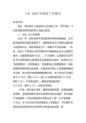 2023X区政府工作报告各位代表:现在,我代表区人民政府向大会报告工作,请予审议,X区政协各位委员和其他列席同志提出意见。一、2022年工作回顾即将过去的2022年,是X区发展进程中极不寻常、极不平凡的一年。面对需求收缩、供给冲击、预X市场环境,面对跌宕反复的新冠疫情,面对历史罕见的洪涝灾害以及留抵退税、重点石化企业涉税案件带来的持续X区以来前所未有、远超预期的巨大冲击和重大挑战,在市委、市政府和区委的坚强领导下,我们以习近平新时代中国特色社会主义思想为指导,全面贯彻落实党的十九大、十九届历次全会和党的二十大精神,深入贯彻落实习近平总书记关于东北、辽宁振兴发展的重要讲话和指示批示精神,认真贯彻...