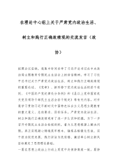 政协主席在理论中心组上关于严肃党内政治生活、树立和践行正确政绩观的交流发言稿