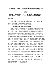 X市长在X市人民代表大会第一次会议上的政府工作报告(2022年政府工作报告)各位代表:现在,我代表市人民政府向大会报告工作,请予审议,并请各位政协委员和列席人员提出意见。一、本届政府及2021年工作回顾过去五年是极不寻常的五年。面对前所未有的机遇和挑战,全市上下深入贯彻习近平新时代中国特色社会主义思想,全面落实党的十九大和十九届历次全会以及习近平总书记对xx重要讲话重要指示批示精神,在省委、省政府和市委的坚强领导下,坚持稳中求进、奋发作为,取得了极不平凡的成绩。(一)综合实力实现历史跨越。先后实现经济总量过万亿、地方一般公共预算收入过千亿、常住人口过千万的新跨越,跻X市行列。X区经济总量跃居X...