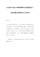 在2023年度全市精神障碍社区康复服务工作高质量发展推进会上的讲话