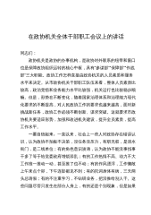 在政协机关党风廉政建设预防提醒谈话集体约谈会议上的讲话同志们:今天,把大家召集起来开展落实党风廉政建设“两个责任”约谈工作,是进一步深化党风廉政建设和反腐败工作的一次再警醒、再鞭策,目的就是通过约谈提醒,进一步强化管党治党的主体责任,督促党员干部把讲政治、守纪律、懂规矩、知敬畏作为一条不可逾越的红线,把落实党风廉政建设工作“两个责任”体系、推进全面从严治党作为履职尽责的分内之事、应尽之责,从根本上改进干部作风,从源头上防止腐败发生,推动全面从严治党不断向纵深发展,努力营造清正廉洁、勤政务实的政协机关工作氛围,建设忠诚干净担当的政协机关干部队伍。下面,我讲几点意见和大家一起学习、一起共勉。一要提...