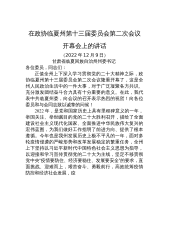 宁夏回族自治州州委书记:在政协宁夏州第十三届委员会第二次会议开幕会上的讲话(20221209)