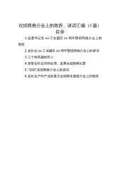 目录在重点产业招商推介会上的致辞1在全县投资和项目建设、招商引资、营商环境暨民营经济发展大会上的讲话3招商引资、产业发展及优化营商环境大会讲话9发改委主任在全市招商工作会议暨项目落地攻坚会议上的发言12在县政府全体会议、廉政工作会议、重点项目观摩暨招商引资工作推进会议上的讲话15在重点产业招商推介会上的致辞尊敬的各位企业家,各位来宾:大家下午好!好风凭借力,送我到赣江。非常高兴乘着和煦的春风,从“五朵金花”的故乡、“风花雪月”的*来到生态之都上饶,与各位企业家朋友欢聚一堂、共商合作、共谋发展。在此,我谨代表中共*州委、*州人民政府,向莅临本次招商推介会的各位来宾、各位企业家朋友表示热烈欢迎!*...