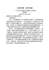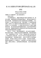 在2022级新生开学典礼暨军训动员大会上的讲话井冈山大学校长罗旭彪(2022年10月22日)亲爱的2022级新同学,新入职的老师们:大家上午好!“冲天香阵透井大,满园尽带黄金甲”相信大家和我一样,刚进入校园,就被璀璨夺目的秋菊深深吸引,被无处安放的井大魅力所折服,对接受新时代井冈山精神的洗礼充满期盼。今天,在党的二十大如火如荼召开之际,我们迎着二十大的真理光辉,齐聚一堂举办2022级新生开学典礼暨军训动员大会,我谨代表学校对7591名本科新生、87名硕士研究生以及43名新入职教师的到来,表示热烈的欢迎和诚挚的祝贺!向含辛茹苦养育你们的父母、精耕细作教育你们的师长和不辞辛苦承训你们的教官致以崇高...