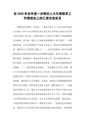 在2025年全市进一步密切人大代表联系工作推进会上的汇报交流发言