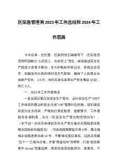 区应急管理局2023年工作总结和2024年工作思路 今年以来,在区委、区政府的正确领导下,区应急管理局牢固树立“人民至上、生命至上”理念,纵深推进安全生产隐患大排查大整治,全力护航杭州亚运会、亚残运会召开,积极应对台风和强对流天气影响,确保了人民群众生命财产安全。1-9月,全区共发生各类生产安全事故10起,死亡9人。 一、2023年工作开展情况 一是全面压紧压实安全生产责任。运行安全生产“4353”工作体系和重点时段全天候“135”预警叫应机制,组织基层应急办全员培训,严格执行督促检查、提醒警示、工作通报等各项制度,出台《区安全生产责任制管理办法》、《关于进一步压实各级抓安全生产责任健全...