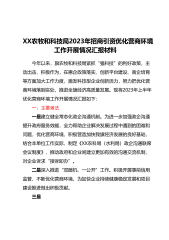 XX农牧和科技局2023年招商引资优化营商环境工作开展情况汇报材料