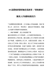 XX县委组织部经验交流发言:“四轮驱动”激发人才创新创造活力