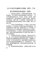 2023年省卫生健康行业党建(指导)工作要点贯彻落实情况报告(医院)一、加强党的全面领导,保障医院高质量发展。认真贯彻执行《关于加强公立医院党的建设工作的意见》,充分发挥医院党委把方向、管大局、作决策、促改革、保落实的领导作用。落实党委领导下的院长负责制,贯彻民主集中制原则,完善“三重一大”决策机制,强化政治监督,把党的全面领导贯穿落实到医院工作的方方面面,医疗工作稳步开展。二、认真学习宣传贯彻党的二十大精神。把学习宣传贯彻党的二十大精神作为年度重大政治任务狠抓落实。坚持党委理论中心组学习制,规范党支部“三会一课”制度,采取多种形式深入学习贯彻新时代中国特色社会主义思想,学习宣传贯彻党的二十大...