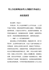 市人力社保局在全市人才建设工作会议上的交流发言