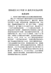党委书记、工会主席2022年度民主生活会个人发言材料