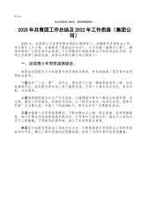 202X年共青团工作总结及2022年工作思路(集团公司)