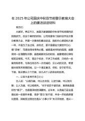 在2025年中秋国庆节前廉政谈话会上的讲话同志们:每逢重要节日节点,都是对党员干部纪律作风的一次重要考验。随着2025年中秋、国庆双节的临近,我们召开这次节前廉政谈话会,目的就是重申政治要求、强调纪律规矩,提醒大家始终保持清醒头脑,确保节日期间不触红线、不越底线、不破防线,以实际行动维护风清气正的政治生态。下面,我讲几点意见。一、提升政治站位,在学思践悟中增强廉政自觉全面从严治党永远在路上,党风廉政建设没有休止符。尽管近年来我们在反腐败斗争中取得了显著成效,压倒性胜利不断巩固拓展,但滋生腐败的土壤尚未完全铲除,个别党员干部纪律意识淡薄、作风不实的问题仍时有发生,不容小觑。这就要求我们必须常怀忧...
