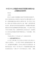 XX在XX公司国庆中秋双节前警示教育大会上的廉洁谈话材料