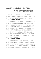 机关单位2024年中秋、国庆节期间纠 “四风” 树新风工作总结.docx