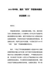 2023年中秋国庆节期间安全大检查大整治工作实施方案范文(三篇)20xx年中秋国庆期间全镇安全生产防范大检查工作方案篇一为认真贯彻全国、省、市安全生产和消防工作暨第三季度防范重特大生产安全事故电视电话会议精神,落实县委县政府有关安全生产工作部署,推动落实国务院安委会安全生产十五条和x“”条硬措施,切实加强中秋国庆重要节假日安全生产防范工作,严防各类事故发生,为中秋国庆假期创造安全稳定环境,决定近期全面开展一次安全生产防范大检查,现制定工作方案如下:一、总体要求认真贯彻落实领袖总书记对安全生产工作的重要指示精神,深刻吸取近期一些地区和行业领域发生的事故教训,切实增强政治敏锐性,更加突出重点地区和...