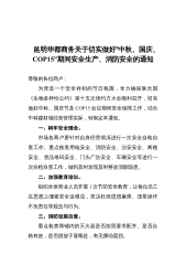 昆明中林建材城“关于切实做好中秋、国庆、COP15”期间 安全生产、消防安全的通知(20210917)