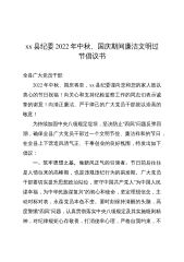 xx县纪委2022年中秋、国庆期间廉洁文明过节倡议书
