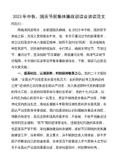 在2023年中秋国庆节前集体廉政谈话上的讲话谈话提纲10篇