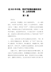 2023年中秋、国庆节“双节”前集体廉政谈话提纲和县纪委书记在中秋、国庆节前的廉政讲稿