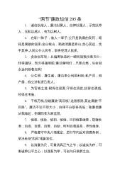 “两节”廉政短信205条1.诚信以做人,廉洁以聚人,自律以服人,示范以带人,无私以感人,有为以树人。2.在职一阵子,做人一辈子;公开是防腐的良药,暗箱是腐败的温床;金山银山,勤政清廉是靠山;贪心莫起,贪手莫伸;人民公仆人民夸,职务犯罪人民抓。3.贪欲似车轮:从偏离轨道的一瞬间就预示着灭亡--转得越快,毁灭得越彻底!廉洁像明灯,只要点燃,生命就永远闪烁着光明!4.公生明,廉生威,廉洁奉公利国利民;私产淫,假产腐,假公济私害己害人。5.为官者之道:耐得住寂寞,守得住清贫,抗得住诱惑,经得住考验。6.千线万线,别碰廉政“高压线”;这路那路,莫走腐败“不归路”。廉洁不论干部大小,自律不分职务高低;敬...