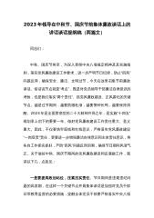2023年党员领导在中秋国庆节前集体廉政谈话上的讲话谈话提纲稿{两篇文}同志们:中秋、国庆节将至,为深入贯彻中央八项规定精神及其实施细则,落实党风廉政建设工作要求,进一步严明节日纪律,防止“四风”问题反弹,确保安全、廉洁、文明过节,今天在这里召集节前廉政谈话。俗话说节点就是“考点”,既是对党员领导干部廉洁自律意识的考验,也是我们落实“两个责任”、抓党风廉政建设、正风肃纪的关键节点。越是过节期间,越要防微杜渐,越要警钟长鸣,越要保持清醒。2023年是全面贯彻党的二十大精神开局之年,是实施“十四五”规划承上启下的重要一年。做好党风廉政建设工作责任重大、意义重大。因此,不仅要筑牢底线和红线意识,严格...