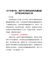 警钟长鸣始于心,廉洁过节践于行—市纪委书记在中秋、国庆“双节”前廉政党课同志们:在中秋、国庆“双节”来临之际,我为大家讲一堂廉政教育党课,既是落实市委、市纪委党风廉政建设和反腐败斗争责任制的相关要求,也是给大家开展一次节前廉政谈话,引导大家在双节期间自觉增强廉洁自律意识,筑牢思想防线,进一步调动大家的工作积极性,始终保持干事创业的良好精神状态。一、深化思想认识,持续增强行动自觉各位党员干部要以习近平新时代中国特色社会主义思想为指导,深入学习领会党的十九届中央纪委五次全会精神,增强推进党风廉政建设和反腐败斗争的思想自觉和行动自觉。第一,自觉践行“两个维护”,以强有力的政治监督保障各项工作顺利开展...
