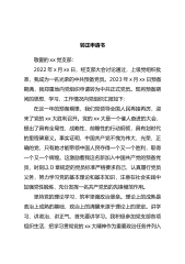 转正申请书敬爱的xx党支部:2022年x月xx日,经支部大会讨论通过,上级党组织批准,我成为一名光荣的中共预备党员。2023年x月xx日预备期满,我郑重地向党组织申请转为中共正式党员。现将预备期间的思想、学习、工作情况向党组织汇报如下:在这一年的预备期里,我们党领导全国人民再接再厉,迎来了党的xx大胜利召开。党的xx大是一个催人奋进的大会,提出了具有全局性、战略性、前瞻性的行动纲领,具有划时代的里程碑意义。事实证明,中国共产党不愧为伟大、光荣、正确的党,只有她才能带领中国人民夺得一个又一个胜利,取得一个又一个辉煌。这激励着我这名新加入中国共产党的预备党员,时刻以D章规定的党员标准严格要求自己,...