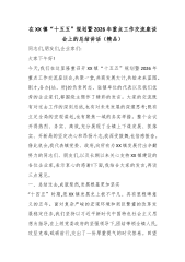 在XX镇“十五五”规划暨2026年重点工作交流座谈会上的总结讲话(精品)同志们,朋友们,企业家们:大家下午好!今天,我们在这里隆重召开XX镇“十五五”规划暨2026年重点工作交流座谈会,共聚一堂,共商发展大计,共绘未来蓝图。刚才,各办(站、所)的负责同志、驻镇单位的代表以及我们优秀的企业家们,都围绕主题作了精彩的发言。大家的交流既有对过去工作的深刻总结,也有对未来发展的深邃思考;既有立足全局的宏观谋划,也有聚焦一域的务实举措。整个会议开得热烈、务实、高效,充分展现了全镇上下谋发展、抓落实、开新局的坚定决心和昂扬斗志,我深受鼓舞,也倍感振奋。借此机会,我代表镇党委、政府,向所有为XX镇发展付出辛...