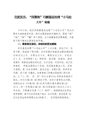 区人大代表工委负责人在人大工作理论与实践交流座谈会上的发言为深入贯彻落实省人大“四建设两提高”的部署要求,充分发挥人大代表闭会期间作用,今年以来,我区人大常委会出台《关于开展“三名”工程提升代表工作质效的实施意见》,探索实施“三名”工程,即名代表培育工程、名代表小组打造工程、名代表履职平台建设工程,着力推动代表工作高质量发展、整体性跃升。(一)系统化设计,确保“三名”工程建设有目标。出台《关于开展“三名”工程提升代表工作质效的实施意见》,以“一项目标+三大工程”为引领,构建“三名”工程的四梁八柱,高点站位、高标推进。同步制定“三名”工程子方案,设定《关于x区人大“三名”工程建设重点履职方向》,...