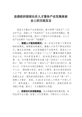 县委组织部部长在人才服务产业发展座谈会上的交流发言.docx
