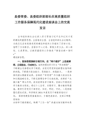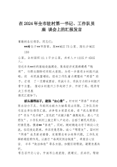 在市委书记调研社会工作部专题座谈会上的汇报发言尊敬的各位领导,同志们:市委社会工作部组建以来,牢牢把握中央和省委、市委赋予的职责使命,认真贯彻落实全国、全省社会工作部部长、信访局局长座谈会精神,聚焦加强党对社会工作的全面领导,紧紧围绕全面推进中国式现代化**实践大局,以常态化纵深推进“抓学习促提升、抓执行促落实、抓效能促发展”行动为抓手,加强系统性谋划、整体性推进,奋力谱写**社会工作新篇章。下面,我谈几点体会。提高政治站位,把牢扛稳职责使命。坚持把旗帜鲜明讲政治作为“第一要求”,牢记政治属性,把准政治方向,严守政治标准,忠诚拥护“两个确立”、坚决做到“两个维护”,确保社会工作始终沿着习近平总...