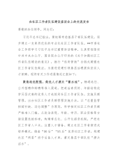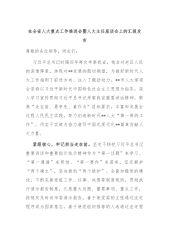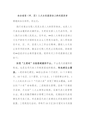 在全省人大重点工作推进会暨人大主任座谈会上的汇报发言尊敬的各位领导,同志们:习近平总书记时隔四年再次考察我省,饱含对老区人民的深情厚爱,体现对**发展的殷切期望,为做好新时代人大工作指明了前进方向、注入了强劲动力。**市人大常委会坚持以习近平新时代中国特色社会主义思想为指导,深入学习宣传贯彻习近平总书记考察我省重要讲话精神,聚焦“走在前、勇争先、善作为”目标要求,丰富和发展全过程人民民主实践,努力创造新时代**人大“第一等的工作”,用实干实绩为奋力谱写中国式现代化**篇章贡献人大力量。紧跟核心,牢记担当走在前。坚定不移把习近平总书记重要讲话和重要指示批示精神作为“第一议题”来学习、“第一遵循”...