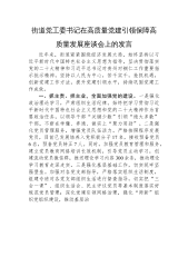 街道党工委书记在高质量党建引领保障高质量发展座谈会上的发言