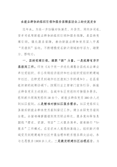 县委常委、县委组织部部长在高质量组织工作服务保障现代化建设座谈会上的交流发言全市组织部长会议深入学习贯彻习近平总书记关于党的建设的重要思想,全面落实全国、全省组织部长会议精神,为我们扎实有效推进党的建设和组织工作锚定了目标计划、指明了方向路径。县紧扣中心大局、聚焦主责主业深入谋划、认真贯彻,以高质量组织工作推进“箫笛名都·侗听x”建设新征程。一、坚持思想旗帜引领方向,在“两个维护”上态度鲜明、立场坚定、行动有力。始终把理论学习作为“终身课题”,不断健全完善理论学习制度,自觉运用党的创新理论指导新的实践,不断提升政治能力、思维能力、实践能力。一是持续巩固主题教育成果。坚持把“学思想”作为重大政治...